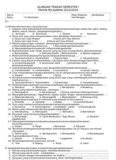 Materi latihan soal uts smp kelas 7 semester 1 kurikulum 2013 / k13 merupakan.